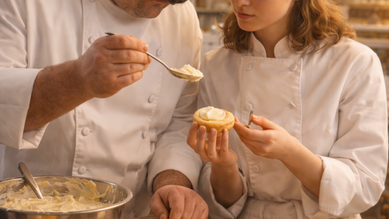 La Polacca di Marina è il racconto di una trasformazione che attraversa i secoli. Nata, secondo la leggenda, dall’arrivo di una suora polacca in un convento di Aversa, questa torta semplice e nutriente si diffonde nel territorio campano diventando simbolo di condivisione e identità. Oggi, grazie al lavoro di Marina e alla collaborazione con un maestro pasticcere napoletano, la ricetta evolve in una versione più soffice e leggera, con impasto tra sfoglia e brioche e crema setosa realizzata con amido di riso. La torta intera e la brioche, nata dalla fetta della Polacca, rappresentano la continuità tra tradizione e alta pasticceria contemporanea. La Polacca di Marina non è soltanto un dolce: è una leggenda che si rinnova e che continua a conquistare nuovi palati tra Aversa, Caserta, Formia e Gaeta.