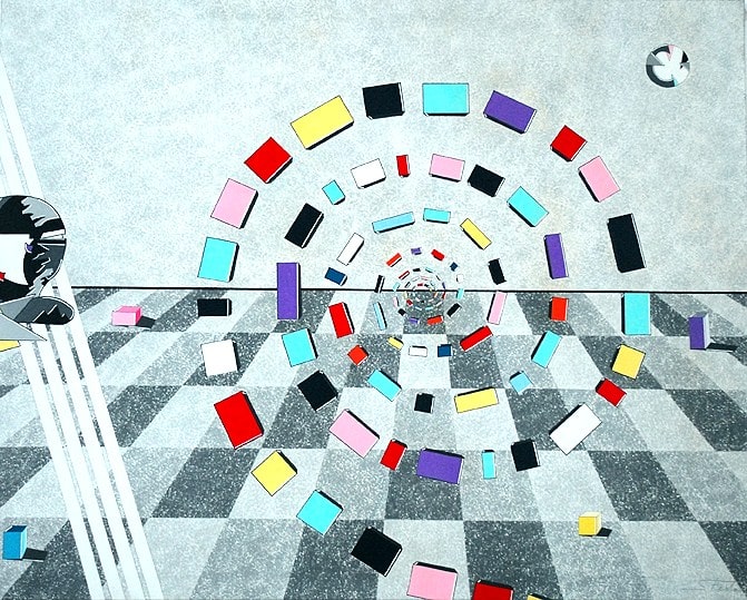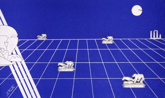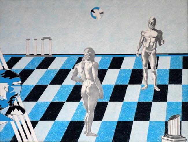 l’incontro con Giorgio De Chirico nel 1974, porterà Festa a concretizzare una nuova corrente artistica denominata “Psicosimbolismo” di cui è oggi ritenuto il caposcuola. L’opera di Festa è fortemente orientata in chiave freudiana. Sulla scacchiera, (che rappresenta la “scacchiera della vita” dove ognuno gioca la propria “partita”), supporto spaziale e ideale, si confrontano le forze dell’Io, rappresentato dal simbolo dell’elmo, in dialettica opposizione con gli impulsi istintivi dell’Es e le istanze del Super Io. Successivamente svilupperà la Archeosofia e la Blusofia. 1979: (Anno Internazionale del Fanciullo) realizza per l’UNICEF l’opera dal titolo “Prospettiva sul loro futuro”.