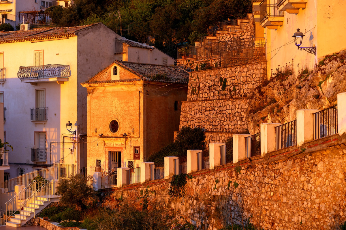 Nel tempo, il borgo si è sviluppato attorno a un sistema urbano medievale fatto di vicoli stretti, case bianche e percorsi che si affacciano sul mare, un insieme architettonico che oggi rappresenta uno degli elementi più forti della sua identità turistica.